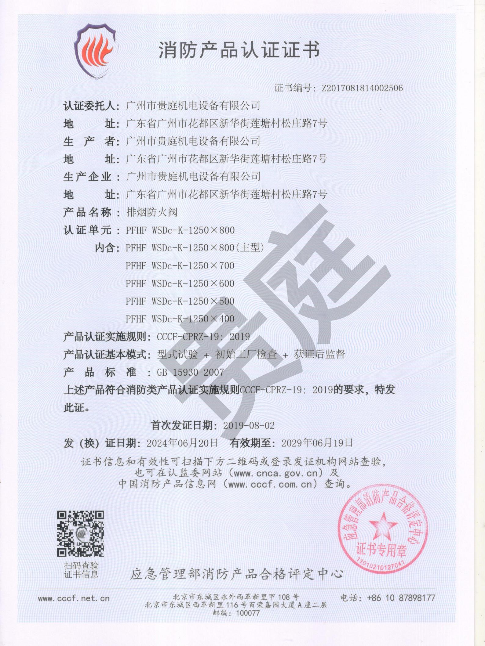 广州市贵庭机电设备有限公司专业生产排烟防火阀、贵庭防火阀、排烟阀、百叶风口、消声器静压箱等消防防排烟、空调通风设备