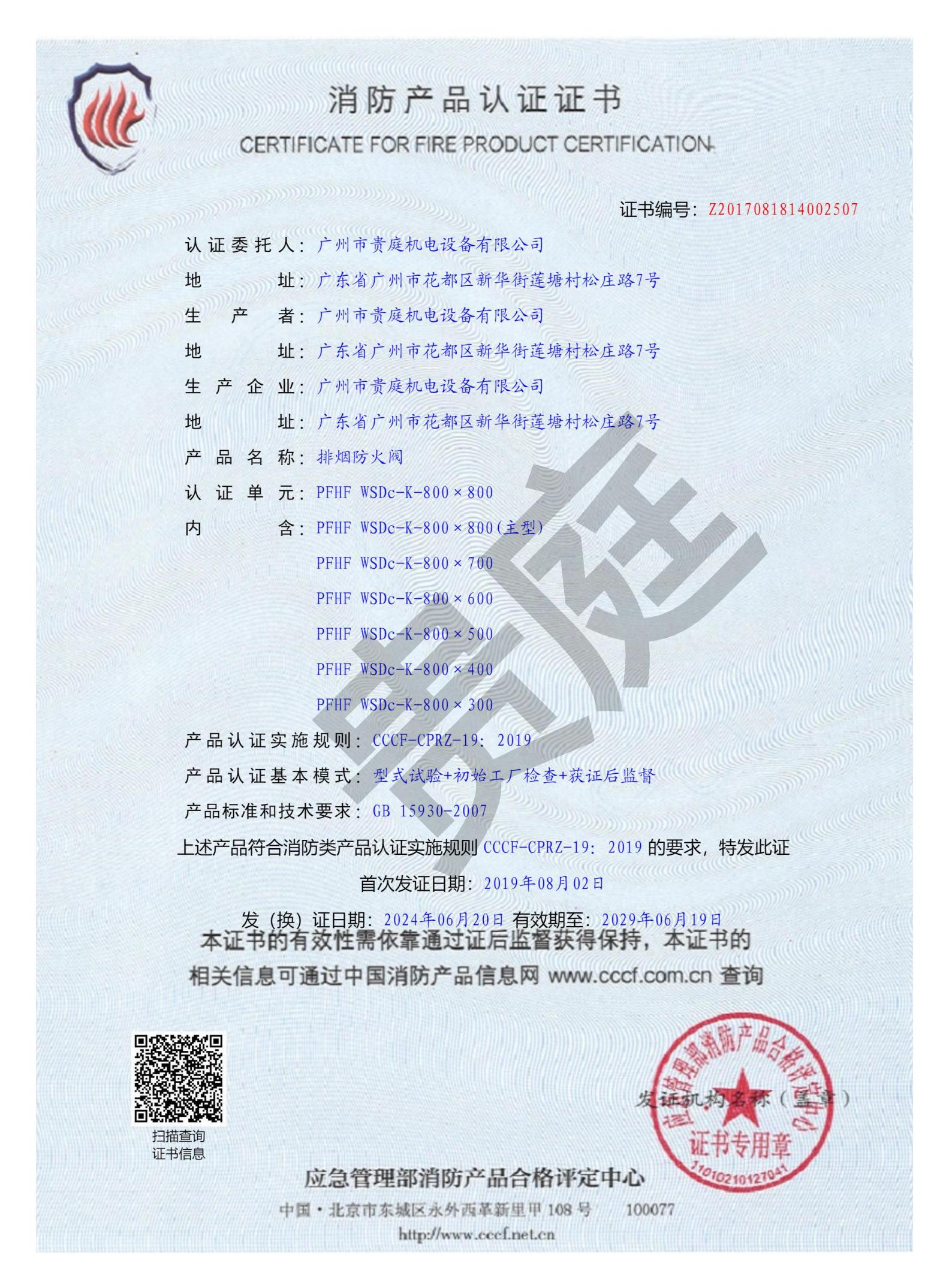 排烟防火阀PFHF WSDc-K-800*800