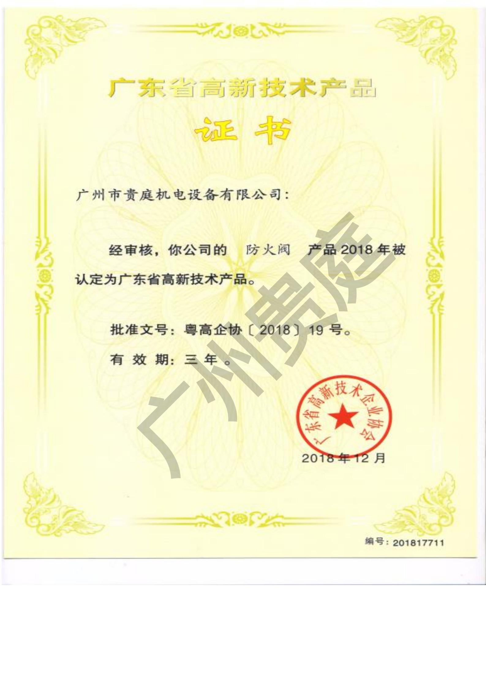 省高新技术产品-防火阀